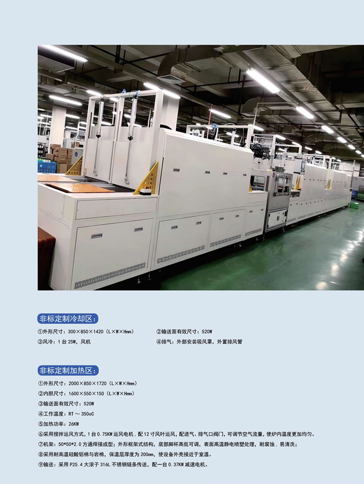 烘干溫度可控:隧道爐烘干線具有的溫度控制系統,可以根據需要設置烘干溫度,保證烘干的質量和效果。