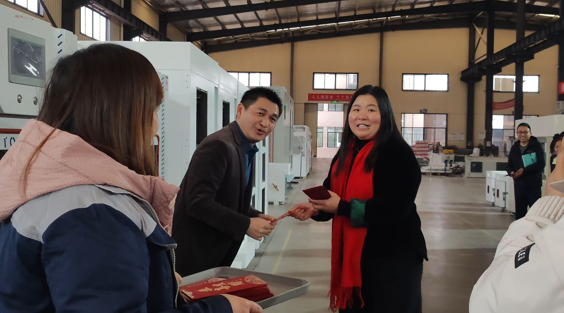 開工當日,最令人期待的環節,當屬老板和老板娘為員工發放開工紅包。一方小小的紅包,承載著公司對每一位員工滿滿的新春祝福,寓意著蛇年財源廣進、萬事順遂。大家有序排隊,依次從老板和老板娘手中接過這份飽含心意的紅包,接過的不僅是物質獎勵,更是對過去一年拼搏的認可,以及對未來攜手奮進的深切期許。這一刻,現場的歡聲笑語、幸福笑容,成為開工首日最溫暖的畫面,也讓大家對蛇年的工作充滿干勁。